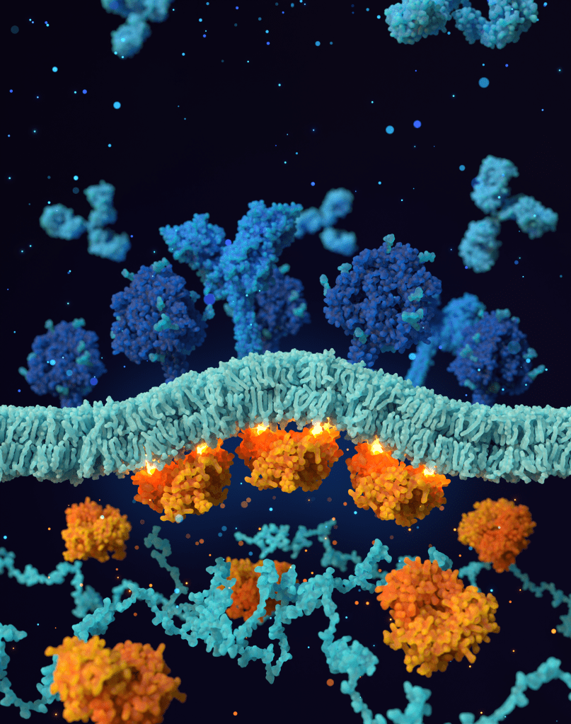 Glucagon receptorRapamycin bound to FKBP12 and mTORThe M protein (Orange) of paramyxovirus inducing curvature in the plasma membrane. This allows the virus to form a bud and escape. Created as a commission for @Paramyxologist Created as a Commission for @TordableThe small subunit of a bacterial ribosomeTetracycline (Red) next to the mRNA (orange)A close up of the active site